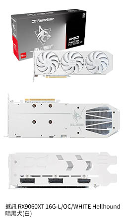 撼訊 RX9060XT 16G-L/OC/WHITE Hellhound 暗黑犬(白)(3310MHz/33cm/三風扇)*MIT台灣製