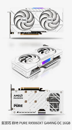 藍寶石 極地 PURE RX9070XT GAMING OC 16GB(3010MHz/32cm/三風扇/三年保/白)金屬背板