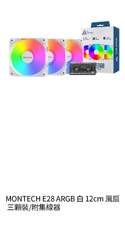 MONTECH E28 ARGB 白 12cm 三顆裝/附集線器/2000RPM/厚28mm/PWM/三年保
