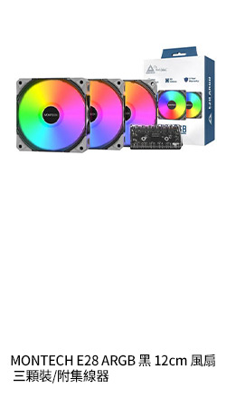 MONTECH E28 ARGB 黑 12cm 三顆裝/附集線器/2000RPM/厚28mm/PWM/三年保