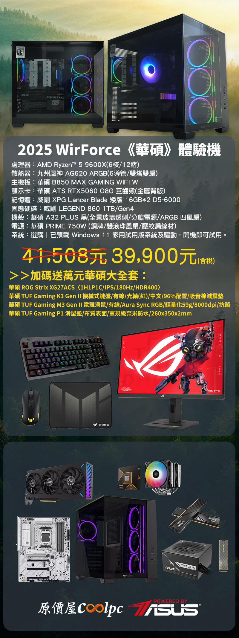萬元華碩全套 0 元送!2025 WirForce《華碩》體驗機釋出。