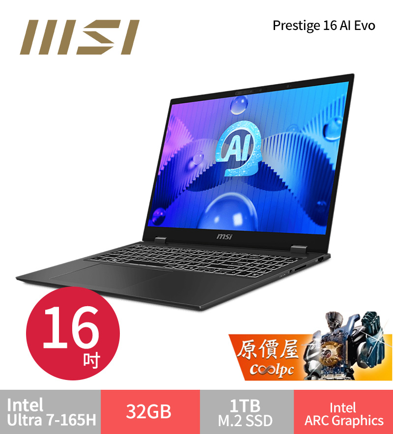 微星 Prestige Ultra 7-165H/32G/1T/16吋 灰 16 AI Evo B1MG-061TW 極致輕薄/商務3年 $41900>蝦皮商城>官網