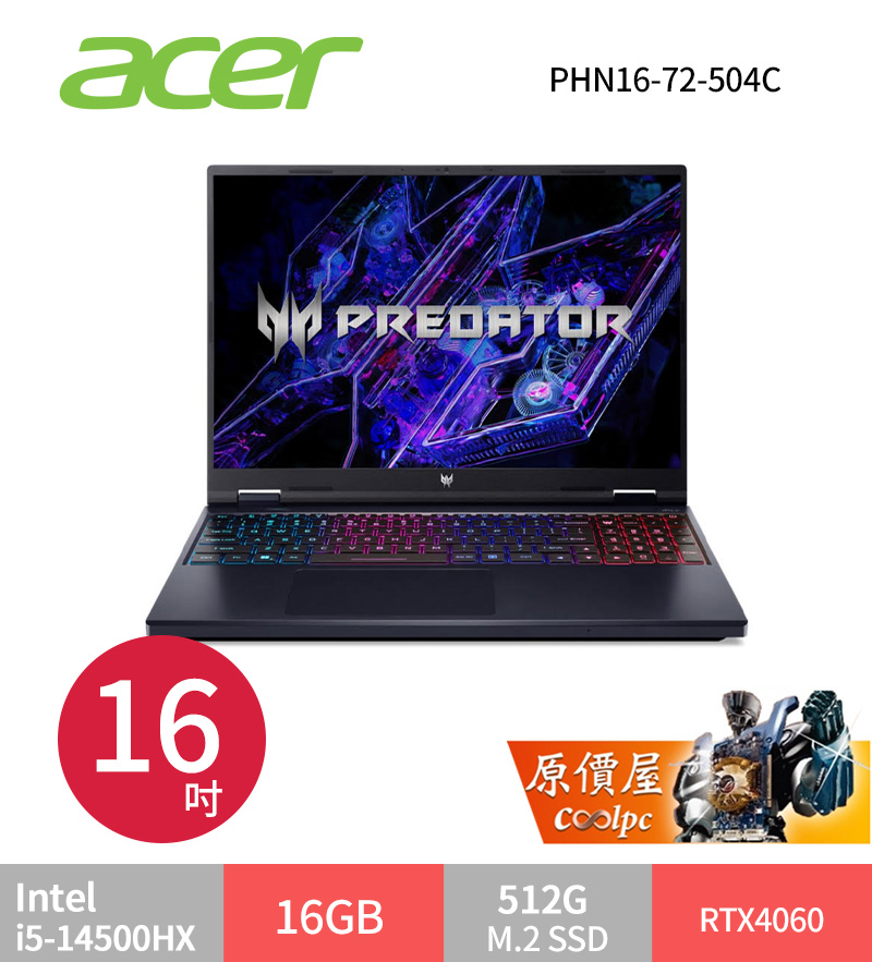 Acer Helios Neo /i5-14500HX/RTX4060/16G/512G/16吋/黑 PHN16-72-504C $42900>蝦皮商城