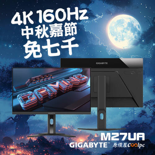 技嘉螢幕萬家香!Gigabyte M27UA 4K 160Hz Gaming Monitor中秋限量免七千!