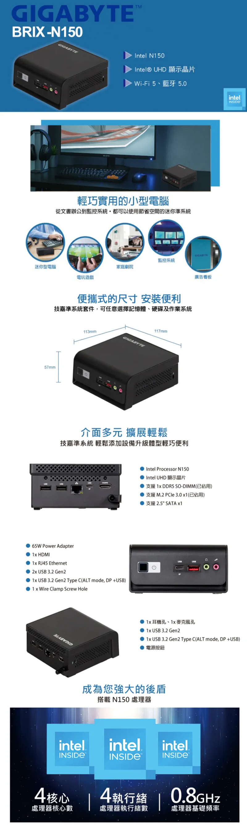 【活動品項】:GIGABYTE BRIX N150 / 8G / 256G / WIN11 PRO, $9990