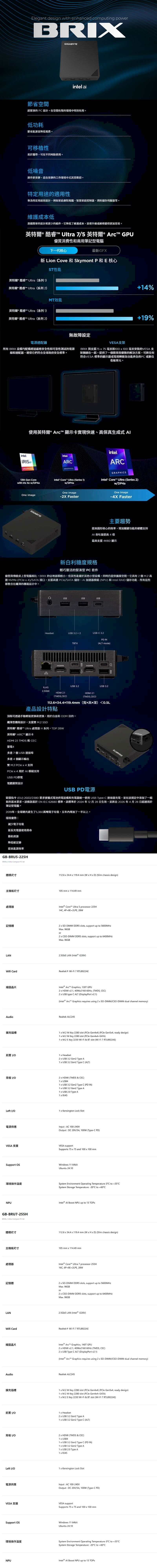 .GIGABYTE BRIX【GB-BRU5-225H】U5 225H (RAM/DISK/OS選購) 官網