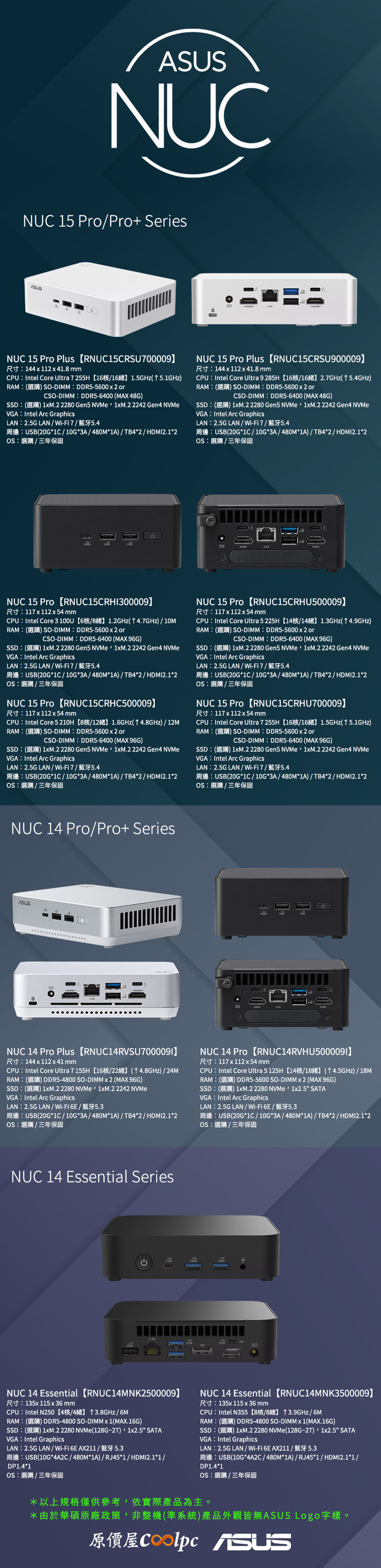 ASUS NUC 15 Pro Plus【RNUC15CRSU900009】U9 285H / 白(RAM.DISK.OS選購), $25999