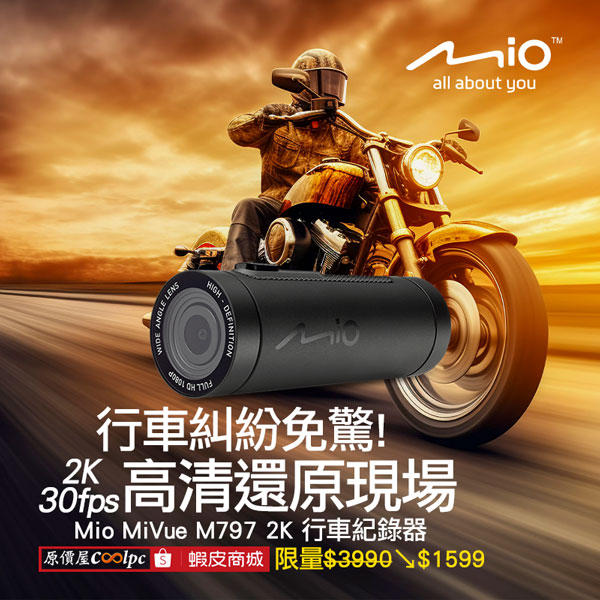 活動內容:Mio MiVue M797 2K 機車行車記錄器 $3990↘$1599