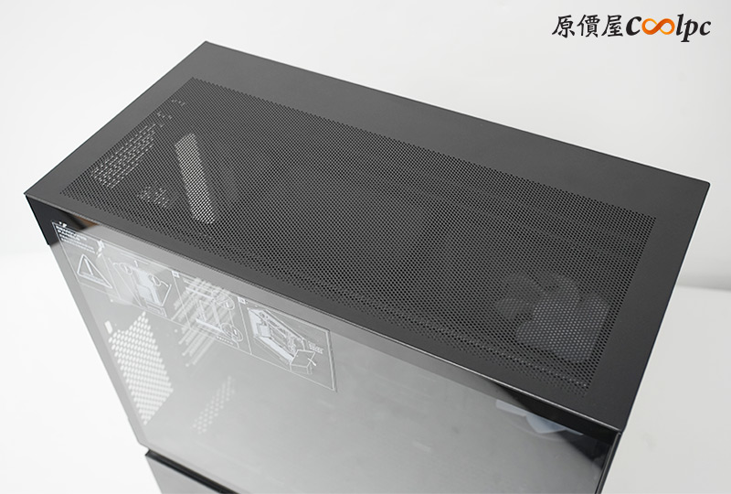 頂部有沖孔鐵網透氣並阻隔灰塵,裏頭的風扇支架能夠擴充3顆120mm或140mm風扇。