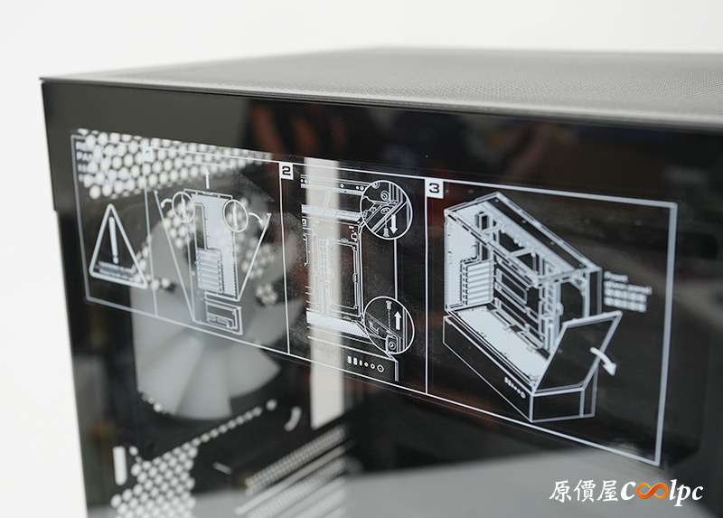 側邊的理線板除了遮蔽線材,同時也有導流板的效果,將前風扇的氣流導至主要發熱區,算是提升散熱效率的一種方式。