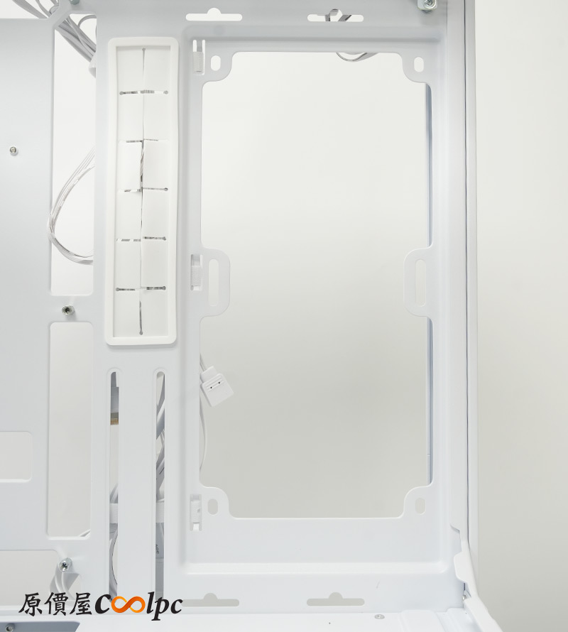 理線板可以移動位置,拆掉的話能裝兩顆120mm風扇,右側版上也有針對這裡做透氣孔喔。