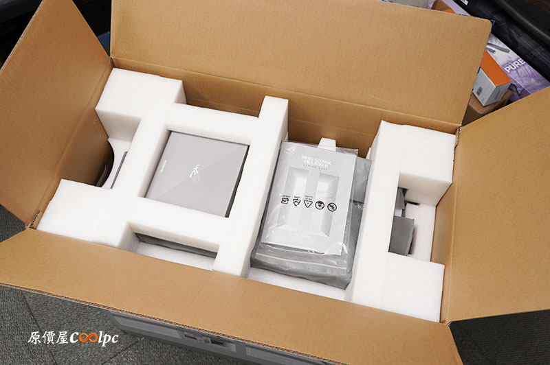 打開盒子可以看到機殼有厚實的發泡綿包覆,機殼本身會有棉套保護機殼刮傷。