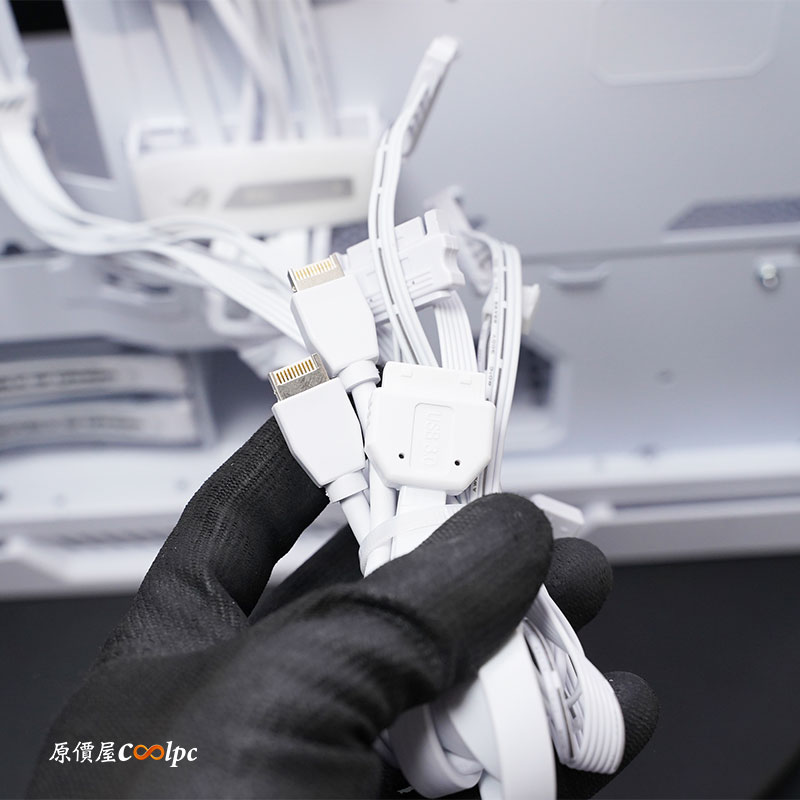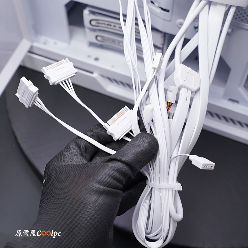 I/O 和風扇與 5V ARGB 燈光控制器線相當多,光是風扇和燈光控制器就要三條 SATA 電源,還有一條 5V ARGB 母頭是要讓你接主機板,可以與主機板燈光同步,還有F_PANEL、HD AUDIO、USB 3.2 Gen1、Type-C USB3.2 Gen2。