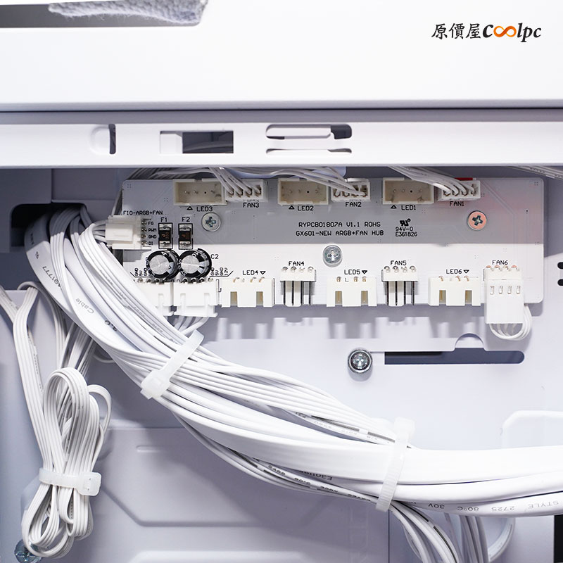 內建 5V ARGB 燈光與風扇控制器分別有六組,風扇部分已經使用四組,可用僅剩兩組,而 5V ARGB 則是都還未使用。