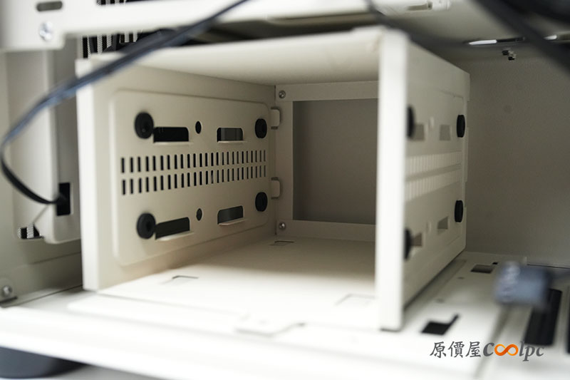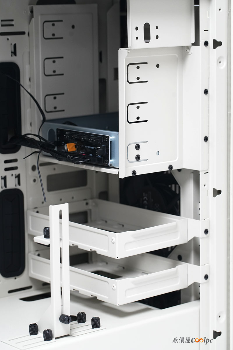 前方預留空間不算大,是因為設有能安裝更多儲存硬碟的支架設計,提升 DIY 玩家的支援彈性。