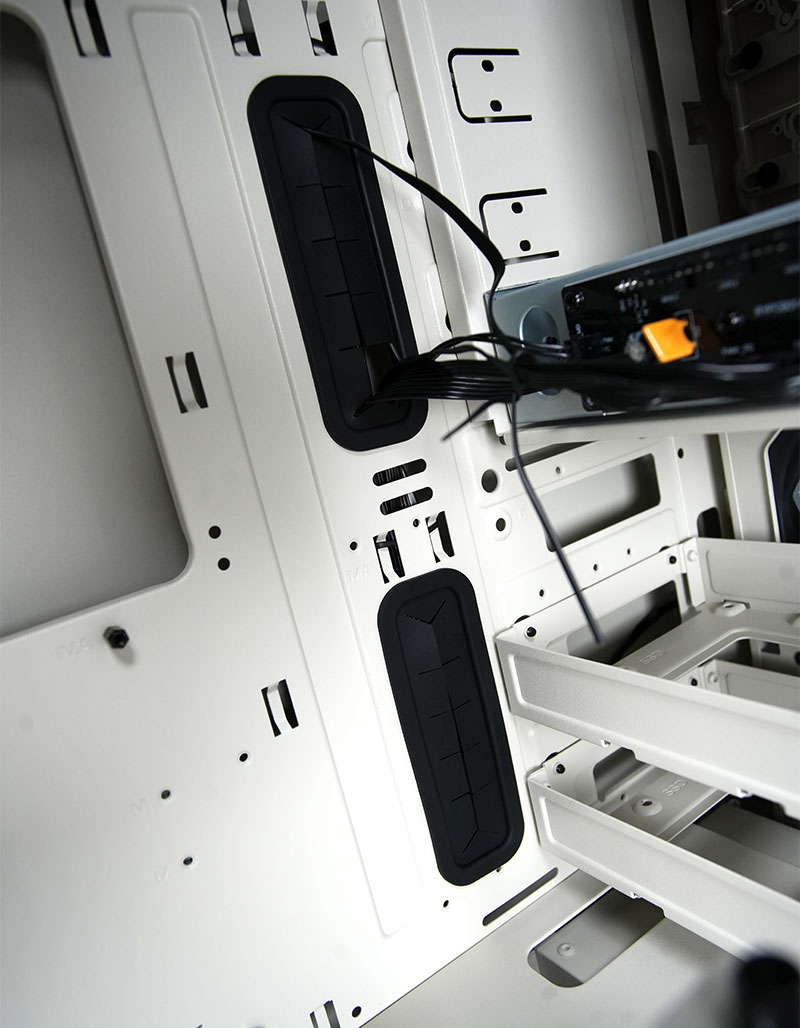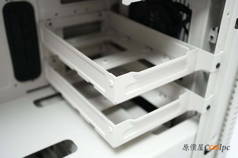 背板上可安裝硬碟架的設計。當然玩家也可以犧牲硬碟的安裝,卸除來增加顯卡安裝的空間。