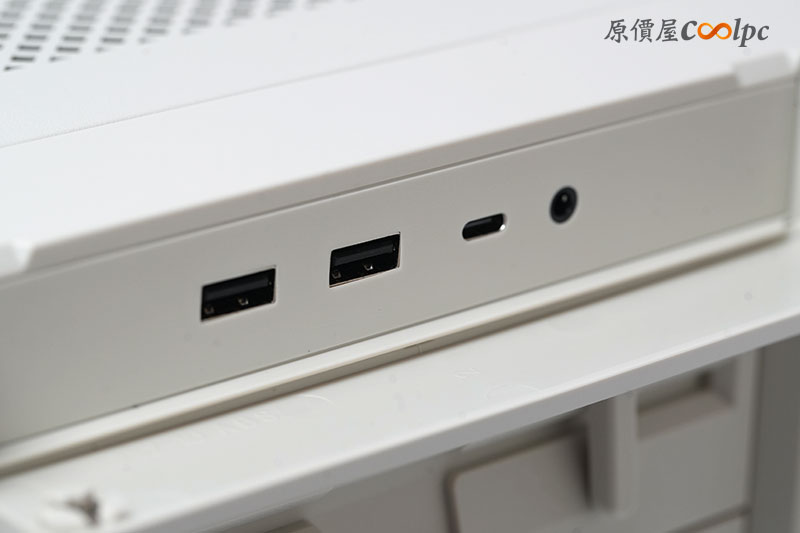 而 USB、TYPE-C、音源孔就配置在前面板的上方,也用了可掀式的遮罩保護著,安全又復古~