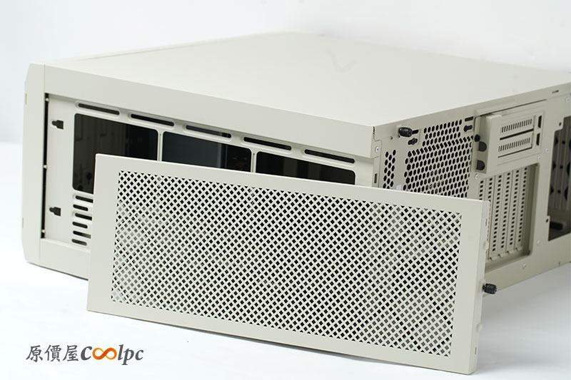 機殼頂端也有大面積孔洞設計的上蓋,一樣具備防落塵的功能。