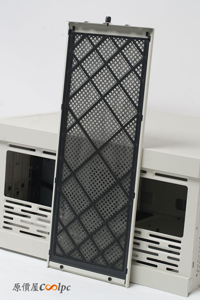 前面板風扇處,有著格柵設計的外罩,以防風扇在運轉時受到干擾。