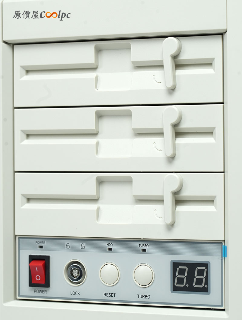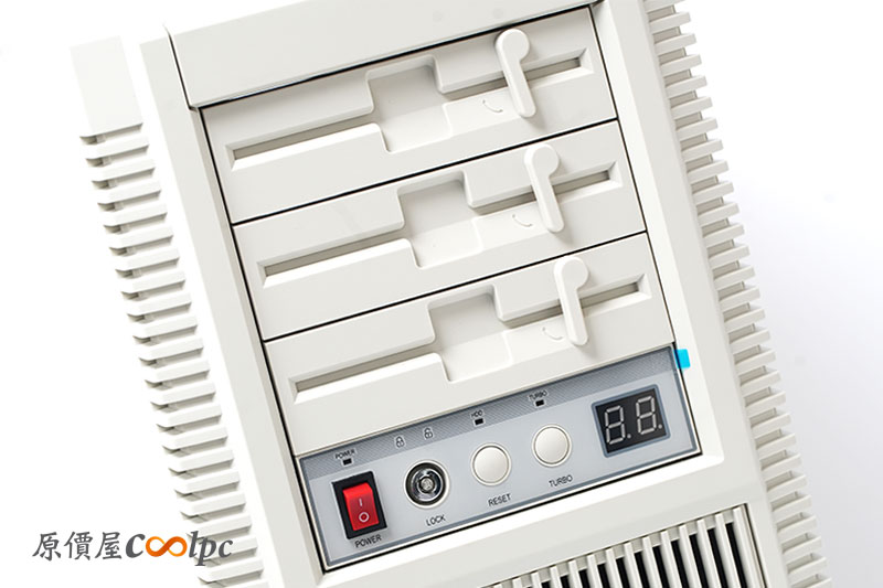 正面復古面板設計重現軟碟機時代經典,三個 5.25 吋擴充槽設計的超懷舊。