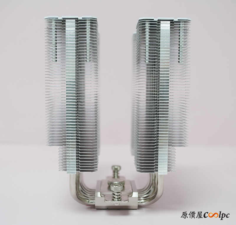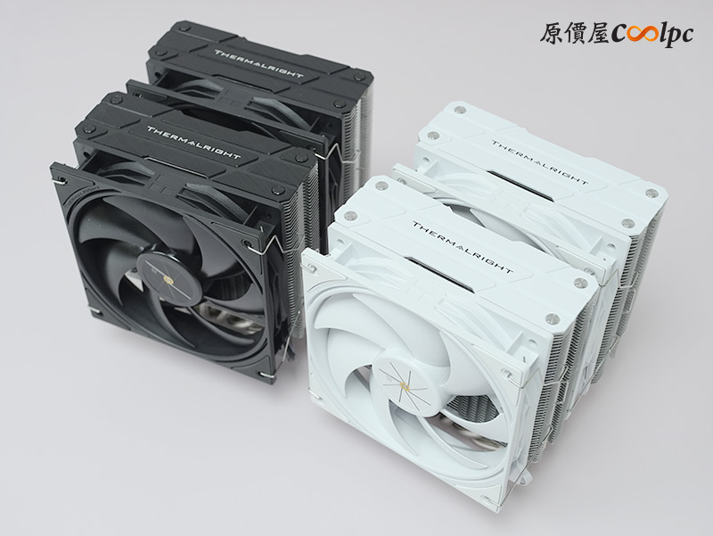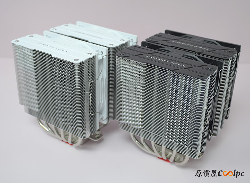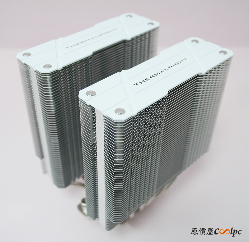 黑白兩款拿出來對照一下,除了最直接的顏色差異外,黑色款的頂蓋多了鋁拉絲風格,其餘的部分基本上相同,鰭片與導管都保留了金屬色,並沒有做到全黑/全白化,不過個人覺得已經是可以接受的程度了,整體搭起來還是好看的。
