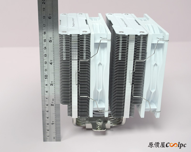 散熱器高度15.7cm(不含風扇),由於沒有偏移設計,右邊風扇基本上會需要調整高度,所以在挑選機殼的時候建議CPU高度要多抓一些預備空間。