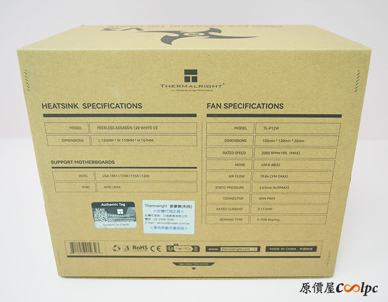 封面印有PEERLESS ASSASSIN 120 WHITE/ BLACK字樣,沒錯這次同時拿到黑白兩色,V3特別放大讓玩家知道它出到第3代囉!還有散熱器簡圖可以參考。