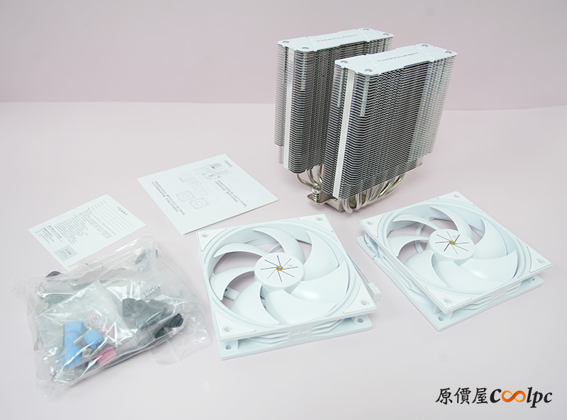 內容物有散熱器本體、風扇*2、安裝配件包、說明書、保固卡。