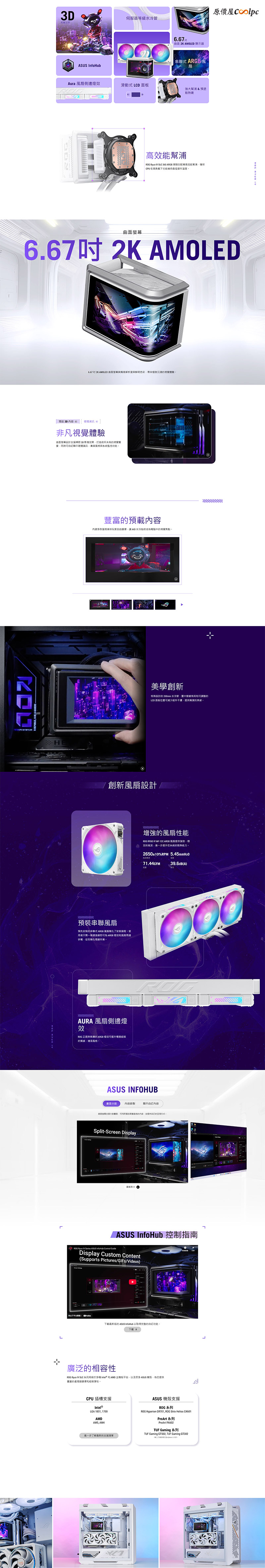 活動內容:華碩 ROG RYUO IV SLC 360 ARGB(白) 龍王四代/6.67吋曲面一體式水冷系統, $11290