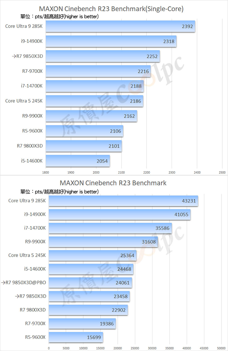 >>AMD Ryzen 7 9850X3D 跑分軟體測試