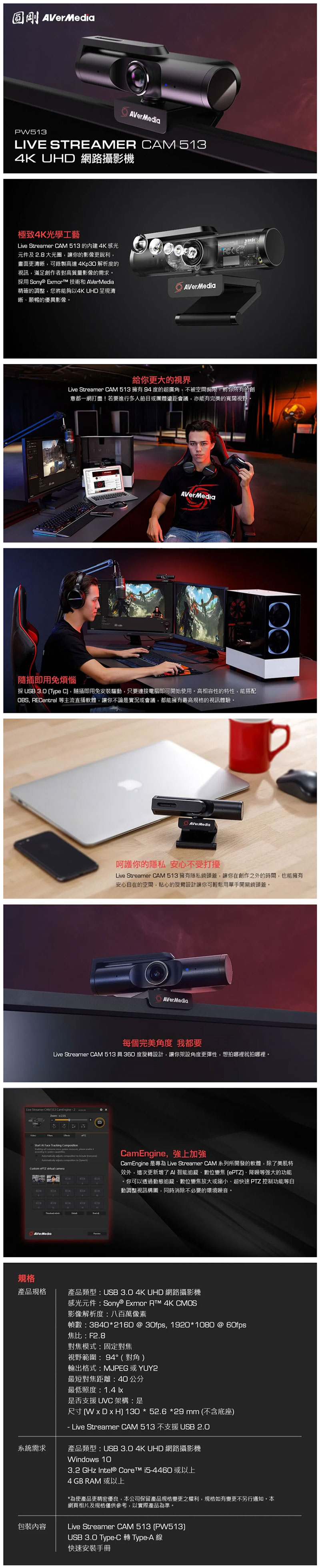 送圓剛 PW513 高畫質直播網路攝影機 4K(J0040852) $4090