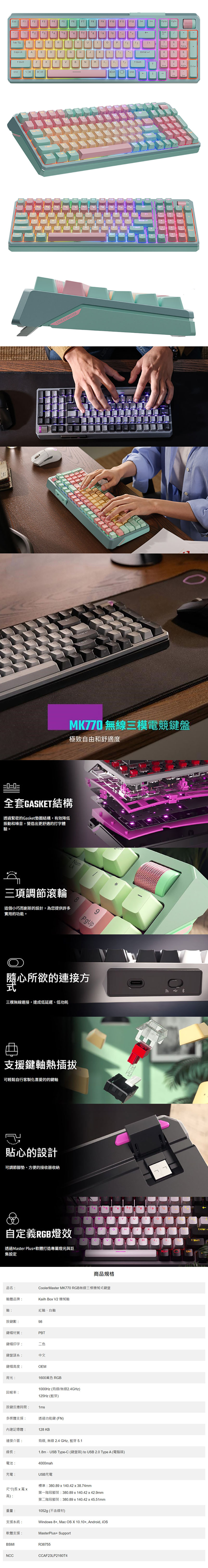 .Cooler Master MK770 三模鍵盤(馬卡龍)中文/白軸(MK-770-MCKW1) $3690↘$1911