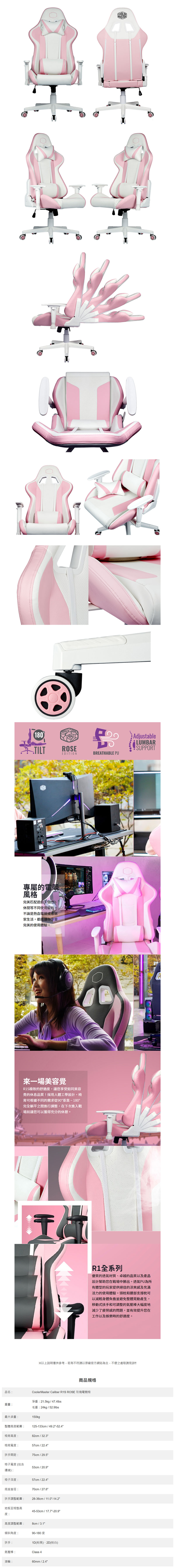 .Cooler Master Caliber R1S ROSE 粉白 電競椅(CMI-GCR1S-PKW) $7490↘$4990