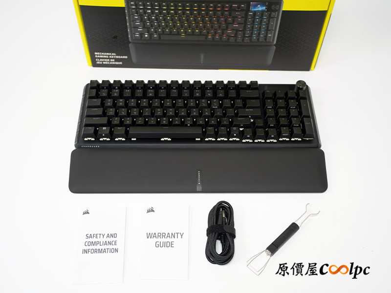 內容物包含鍵盤本體、手托、說明書、簡易拔軸器、USB to Typr-C 連接線。