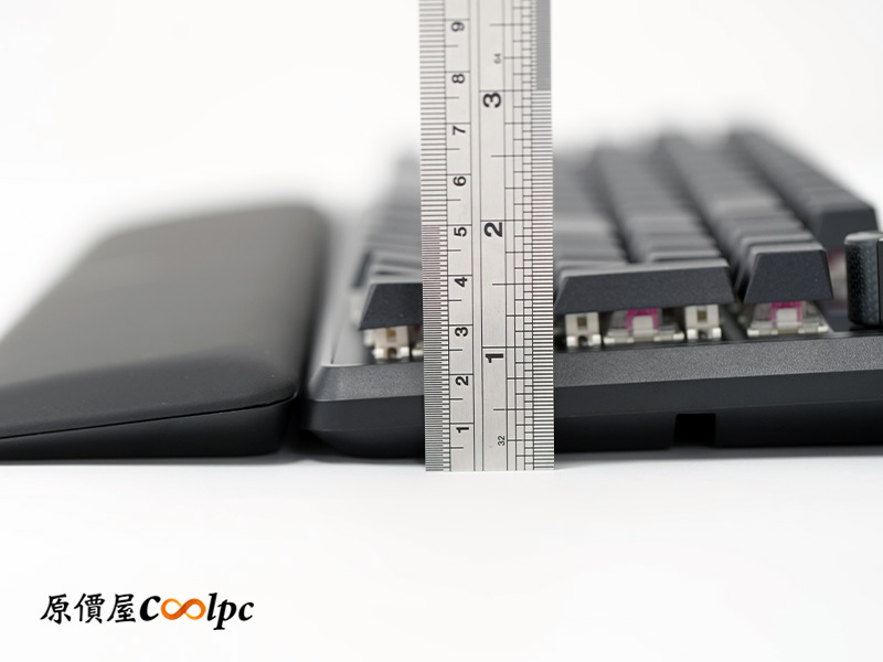 鍵盤前緣包含鍵帽的高度接近 4 公分,對手比較小的玩家來說,懸空感可能會比較明顯。強烈建議一定要搭配手托來墊高,這樣敲起來的手感才會最舒服、最省力唷!