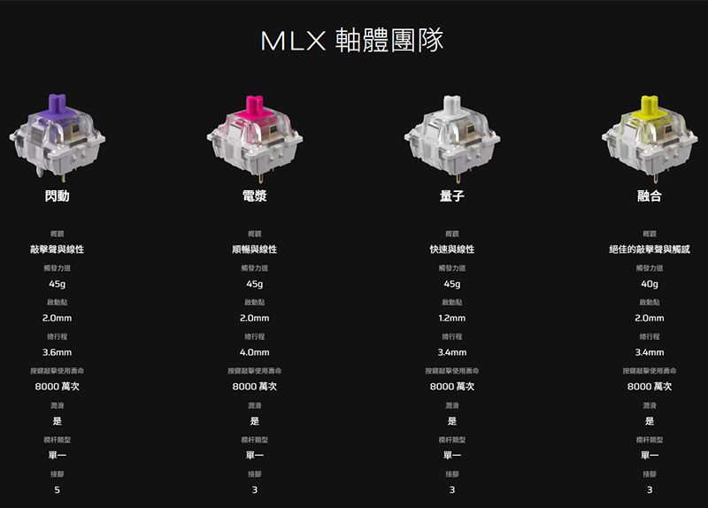 除此之外還有提供段落紫軸、觸感黃軸、快速觸發銀軸等多種選項,各位玩家們可以按照自己的喜好挑選唷。