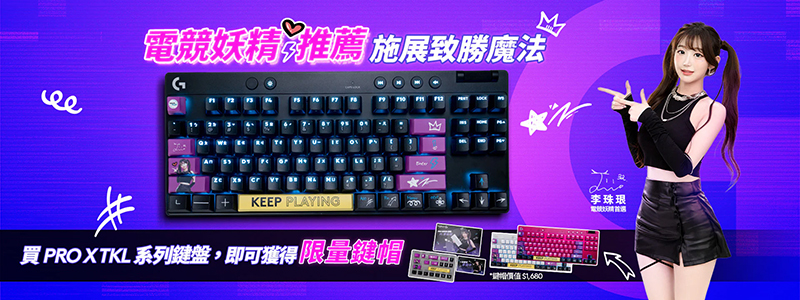 三振舞跳起來!羅技 G PRO X Lightspeed TKL / TKL Rapid 鍵盤最高現省 $1500,限量再送李珠珢紫色應援鍵帽!