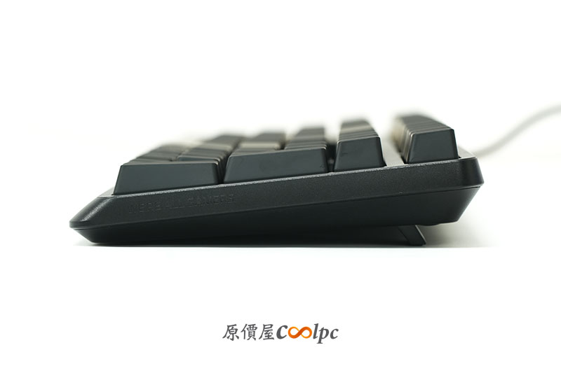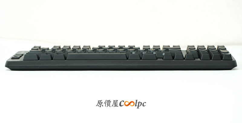 側面可以看到鍵盤本體的高度與傾斜設計,長時間打字也能保持舒適手感。
