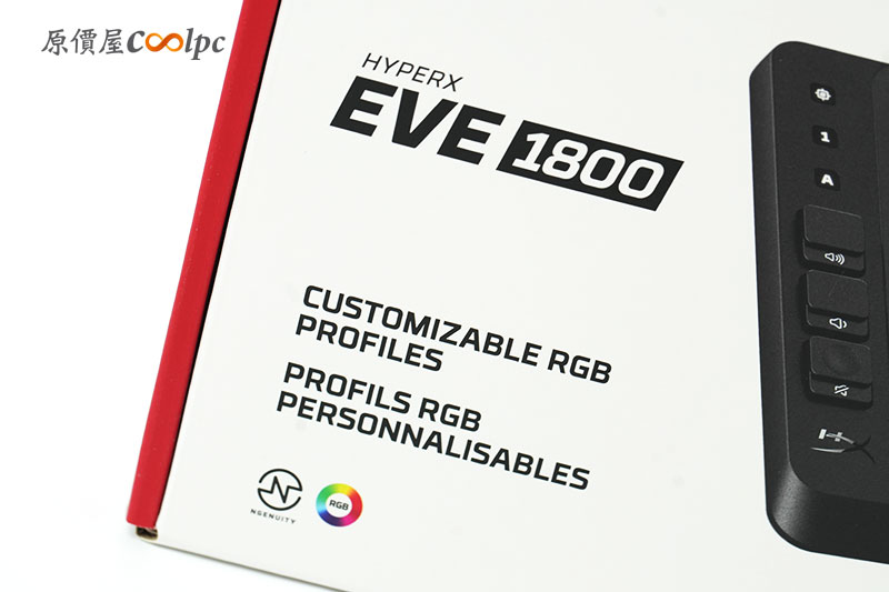 Eve 1800 支援 10 區 RGB 燈效,可以透過 HyperX 軟體進行燈光設定與效果調整。