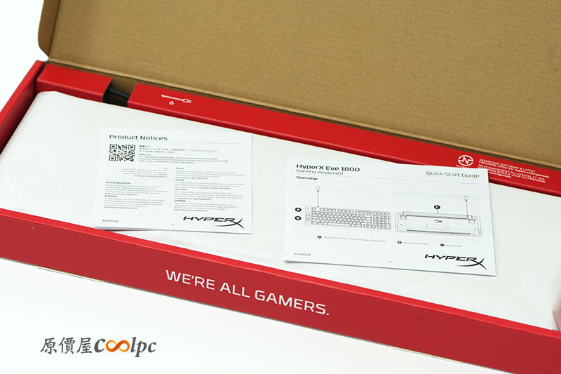 如果你最近正打算替桌面搞一把全新的電競鍵盤,那這次「HyperX Eve 1800 電競鍵盤」的上市優惠絕對值得留意!HyperX 再次帶來兼顧實用性與電競質感的新選擇,以緊湊實用的 1800 配列設計,在保留數字鍵區的同時,縮小了整體體積,讓桌面空間更俐落,不論是遊戲玩家還是日常工作使用都能輕鬆上手。這次新品上市更推出了超值優惠,讓你升級裝備不用等打折季!這把「HyperX Eve 1800 電競鍵盤」採用經典的 1800 layout,兼顧全尺寸功能與更精簡的桌面佔用空間。對於需要數字鍵輸入、同時又希望桌面更整潔的玩家來說,可說是相當實用的配置。鍵盤整體外型維持 HyperX 一貫俐落的電競風格,搭配穩定的按鍵手感與耐用設計,不論是長時間打字、遊戲連續操作都能保持舒適體驗。當然,新品上市不只帶來新鍵盤,HyperX 這次還同步推出超值的鍵鼠組合優惠。原本單買鍵盤與滑鼠總價要 $3380,現在直接推出限時組合價 只要 $2490!整整現省 $890~等於用更甜的價格一次把桌面兩大主力裝備通通帶回家~而組合中的滑鼠同樣不馬虎,搭配的是「HyperX Pulsefire Fuse 無線滑鼠」。這款滑鼠主打輕巧設計與穩定的無線連線表現,能帶來順暢的操作體驗。不論是遊戲中的快速移動、精準瞄準,或是日常使用的流暢滑動,都能輕鬆勝任。無線設計更能讓桌面少一條線材干擾,整體視覺與使用體驗都更加清爽!所以本來就打算入手一把新鍵盤的你,現在能直接升級成整套 HyperX 鍵鼠組合其實更划算啊~現在就接著看下去我們這次為大家準備的精華開箱,再趕緊到我們原價屋下單購買,絕對是CP值暴表的最佳組合!
