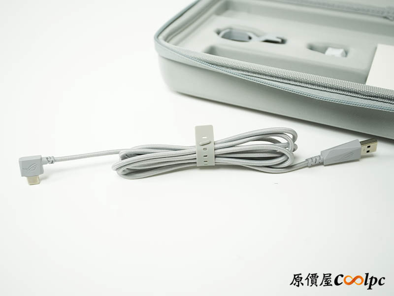 內附一條非常厚實的 USB 轉 Type-C 編織線,這條線主要是為了穩定輸出 8000Hz 的高回報率所設計,為了確保效能不打折,強烈建議大家直接用原廠線,別拿一般的線隨便亂插!Type-C 接頭採用了 90 度直角設計,這對玩家來說超級加分!不論你的主機放在左邊還是右邊,或是你的桌面空間怎麼配置,又或是傳說中的斜鍵仙,這條線都不會卡到手或影響桌面整潔,愛怎麼擺就怎麼擺,靈活性很高唷。