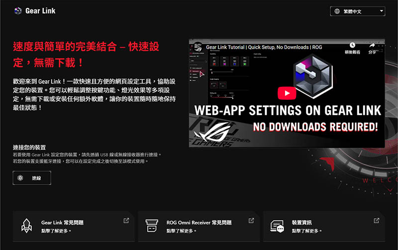 鍵盤支援 Gear Link 網頁版應用程式,無需下載額外檔案或進行安裝即可自訂鍵盤設定,將鍵盤插入電腦後就會開始引導進入網頁,從按鍵功能到韌體更新一應具全。(點我前往