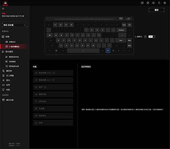 (點圖放大)鍵盤上方的觸控條與轉輪同樣支援功能自訂。雖然目前兩者的分工非常明確,但小編微小的願望是,希望未來華碩能透過更新,讓兩邊的可選功能完全整合在一起自訂!這樣一來玩家在左右手配置上的靈活性一定會更高,操作也會更隨心所欲!