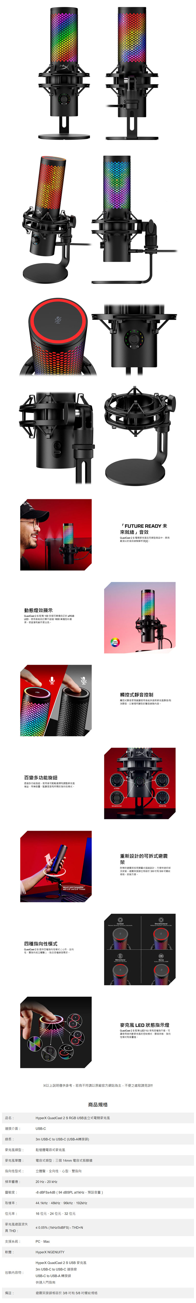 「HyperX Quadcast 2S」至所以這麼香,是因為它不只是單純會收音的麥克風,它基本上是桌上的「光之魔法師 + 聲音調校師」!配備 RGB 燈效更進化,柔順流動光效+可自訂燈色,直播間氣氛直接升級,不用說話就能先帥一波~還有四種收音模式任你切換,心型/全向/立體聲/雙向… 你想 solo、想訪談、想錄 podcast、想開會罵同事(笑),它全部幫你顧好!不管怎麼錄,聲音都穩、乾淨又好聽。頂部也有觸控靜音設計,如果你突然想咳嗽、想罵髒話、貓突然亂入?只要手指輕點頂部即可瞬間靜音,再搭配 LED 提示超直覺,不怕尷尬瞬間被直播永久保存。最後「HyperX Quadcast 2S」也擁有反震架 + 防噴網一次到位,你不用再另外加購一堆配件,官方直接幫你配好。桌震、敲鍵盤、噴麥通通走開!快趁這次雙 12 前提前入手! 數量有限,先搶先爽,把你的直播、錄音、遊戲人生全部升級起來!