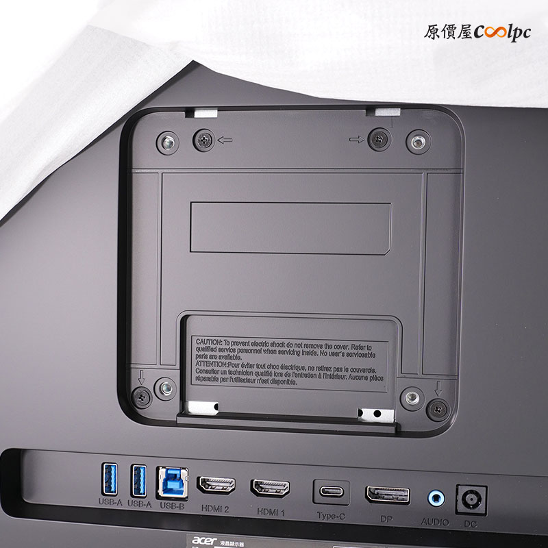 螢幕後方也有 VESA 100 x 100mm 壁掛鎖孔。