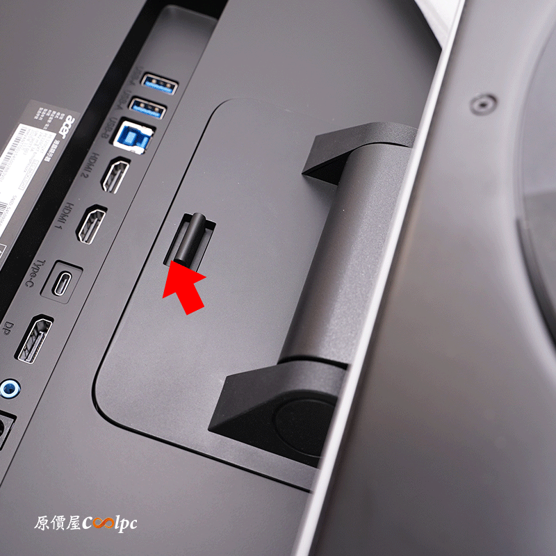 支架安裝有個小細節,支架卡到螢幕之後,背面的卡榫一定要往下推,支架才會固定牢靠!