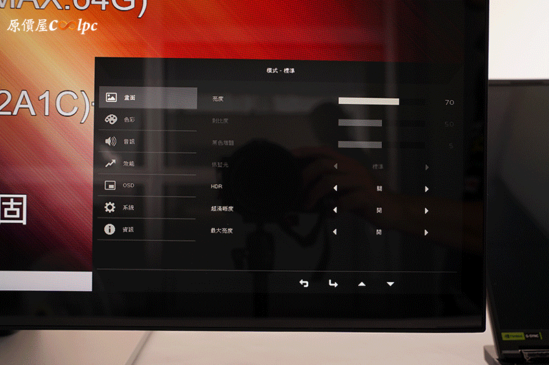 功能選單還有更詳細的設定可以調整,像是有畫面、色彩、音訊、效能、OSD、系統、資訊等。
