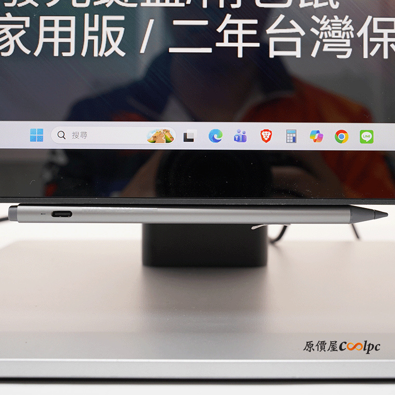 內附的觸控筆可以磁吸在螢幕正下方或底座。