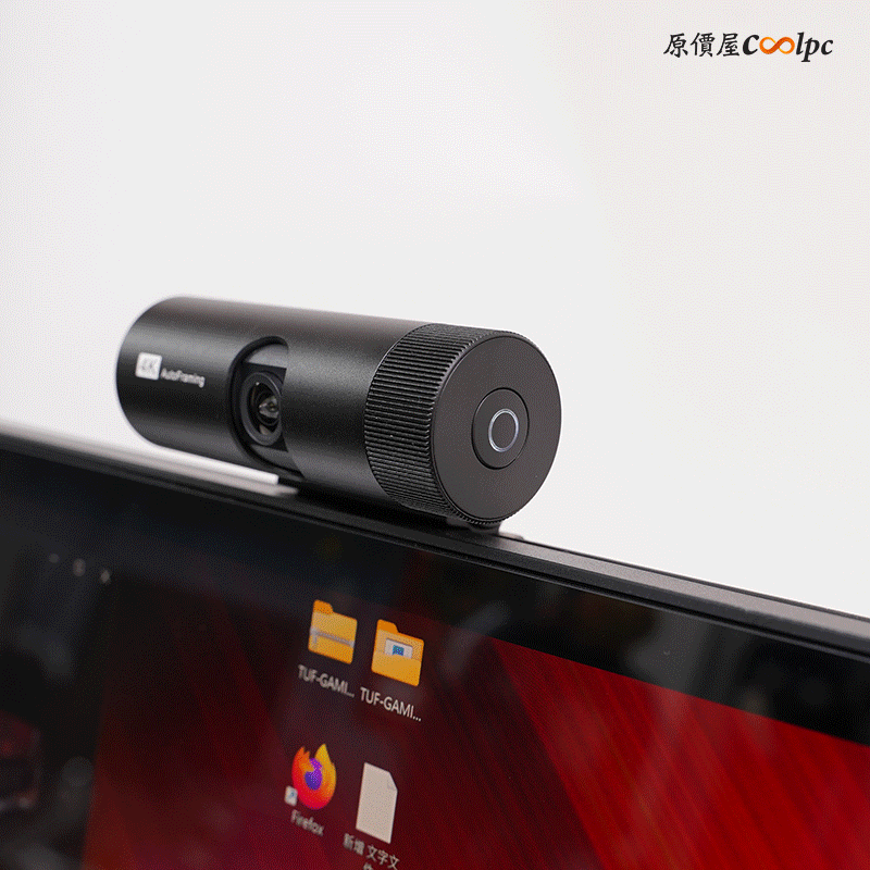 視訊鏡頭確認為 4K 解析度,旁邊設有指示燈(使用中為紅燈,未使用為白燈)。其廣角設計能涵蓋廣闊範圍,甚至半個辦公室皆可入鏡。
