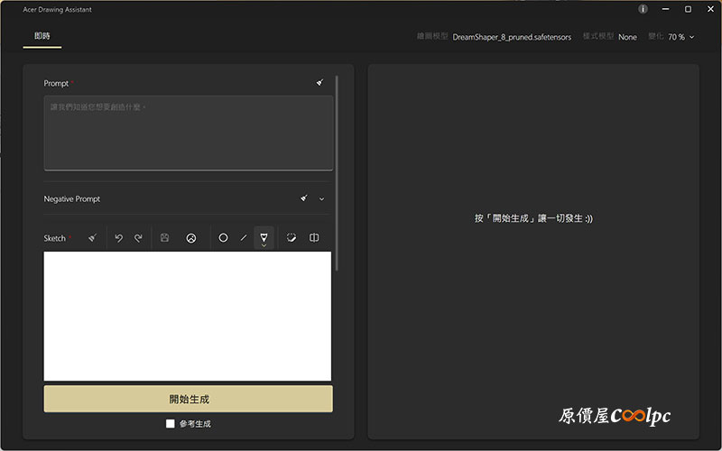 像小編這種不擅長繪畫,亦可透過 Acer AI Drawing 軟體,結合手繪與指令生成圖片,從初學者轉變為熟練使用者,相當有趣。使用此功能需搭配 Acer 自家設備平台 (點我查看);若非 Acer 電腦,可選用其他開源 AI 繪圖軟體。